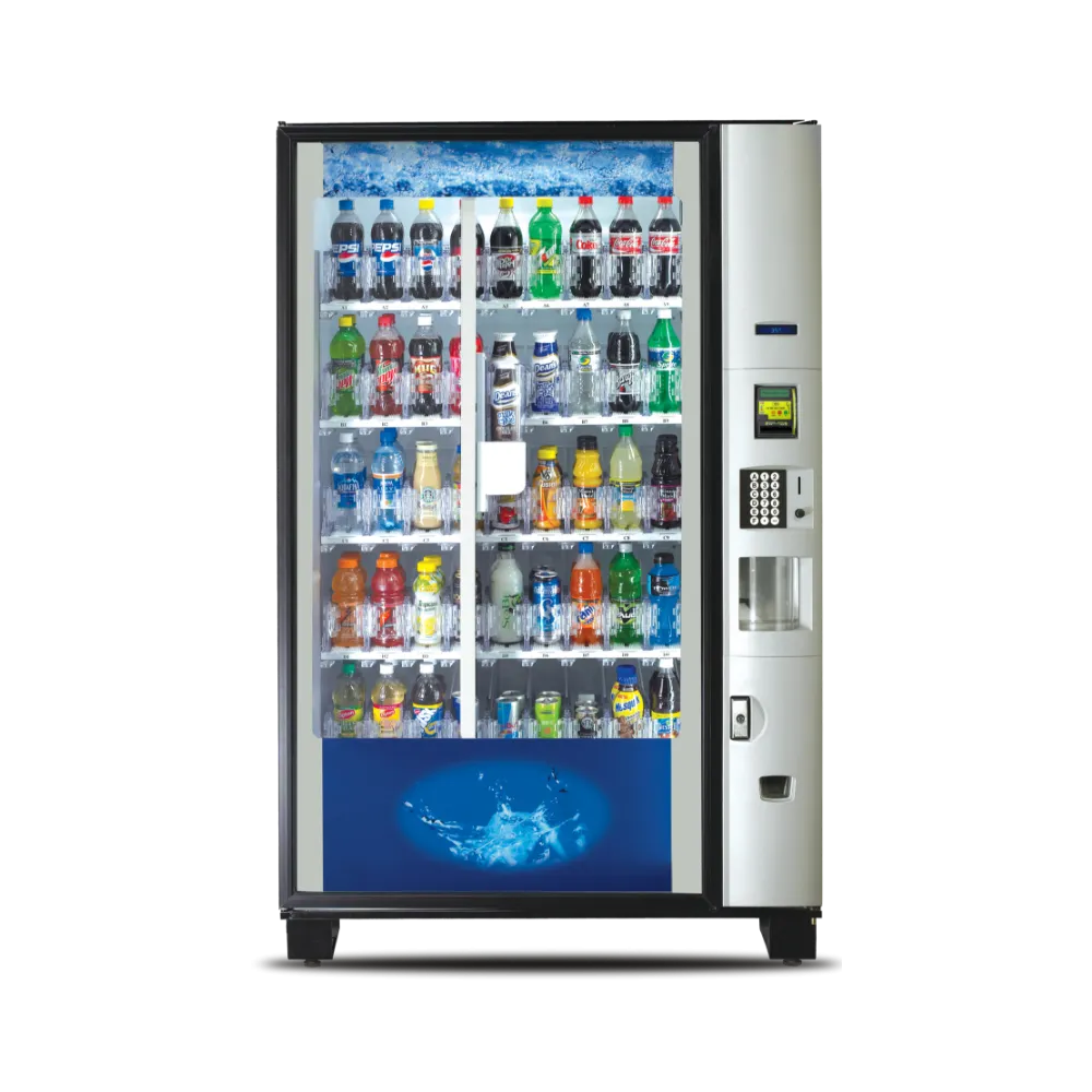 High-capacity cold beverage vending machine designed for both cans and bottles.